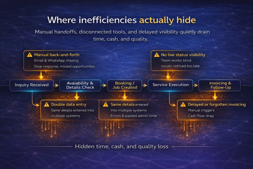 Unoptimized Process Flows hide Friction-points and Bottlenecks that unnecessarily cost your business.